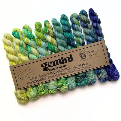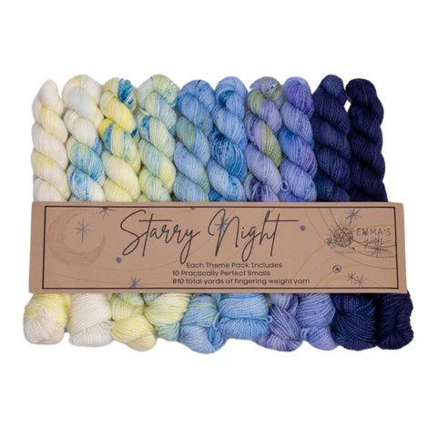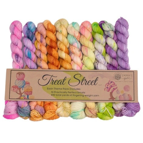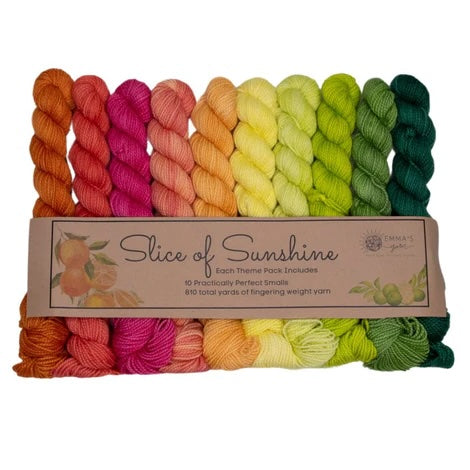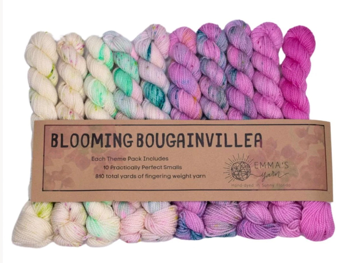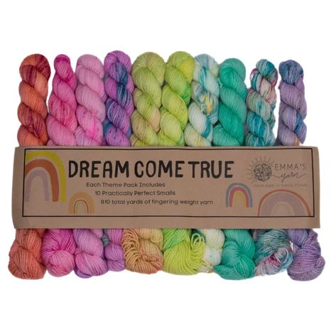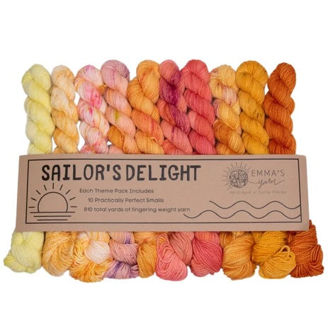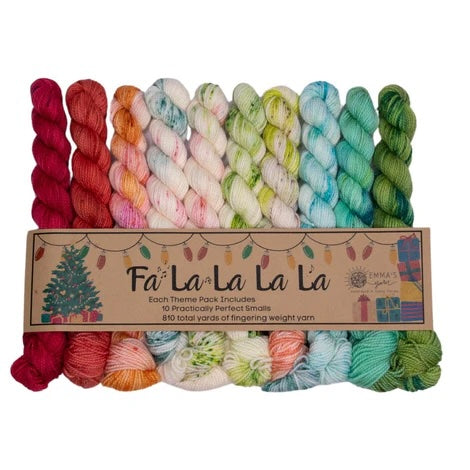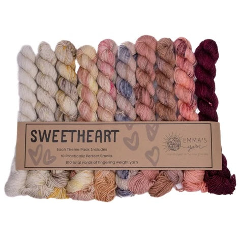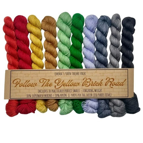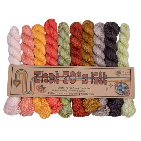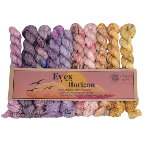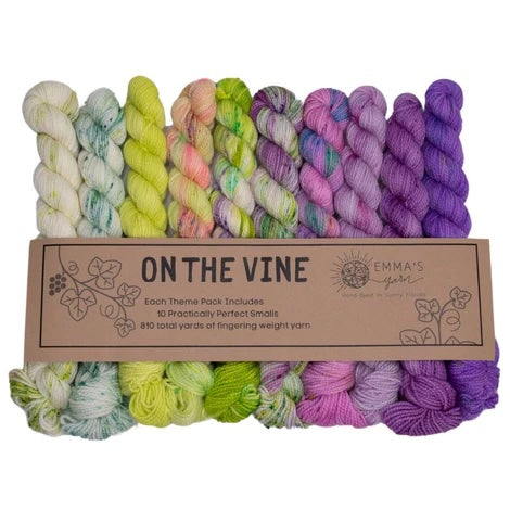 Emma’s Yarn has developed “Theme Packs” – each including 10 Smalls that coordinate perfectly and are meant to be used together for a color “melting” effect. Emma & Aspen have been dreaming these up for years and are so excited to finally introduce them to you!