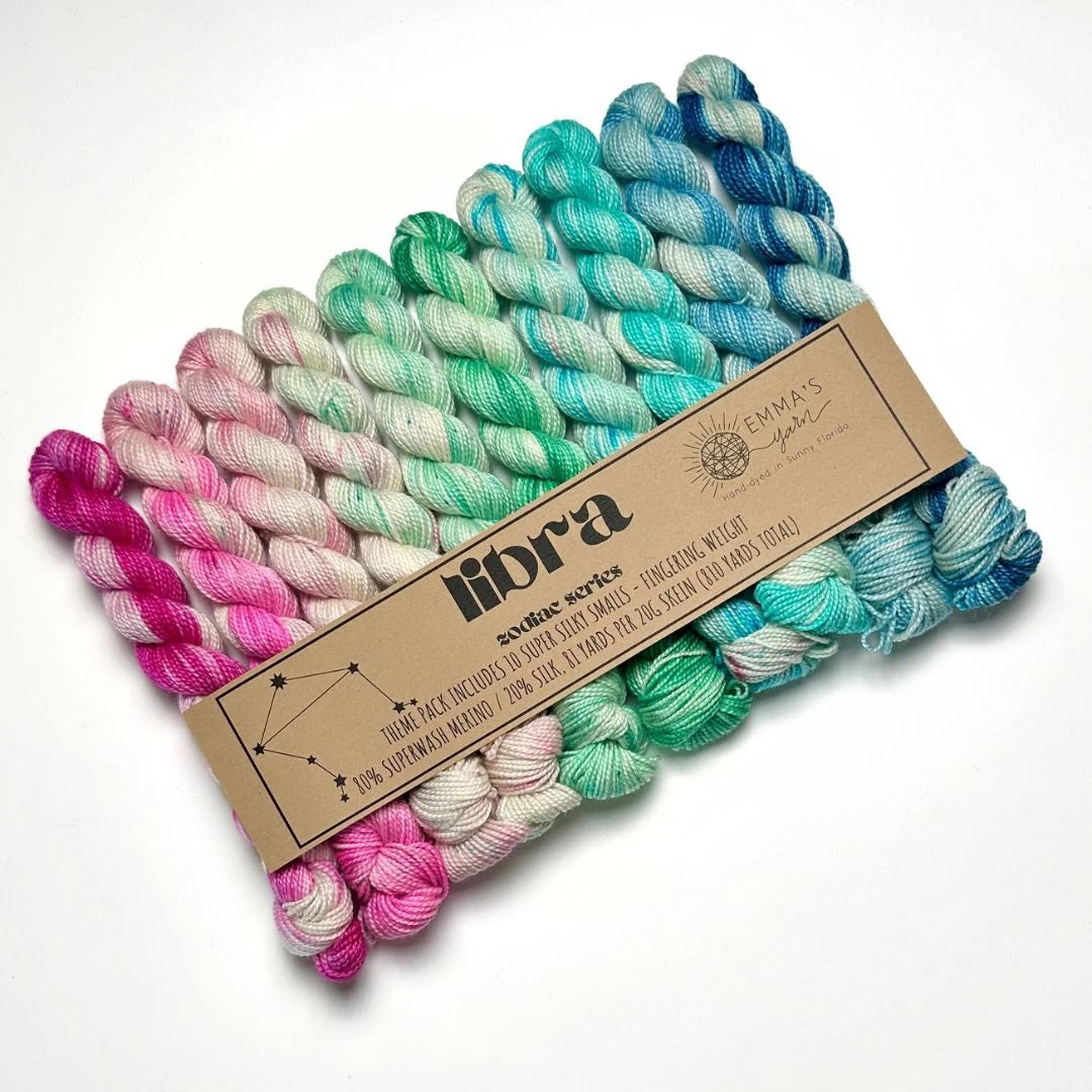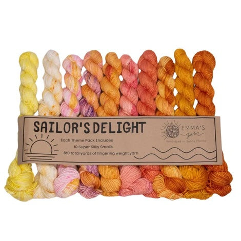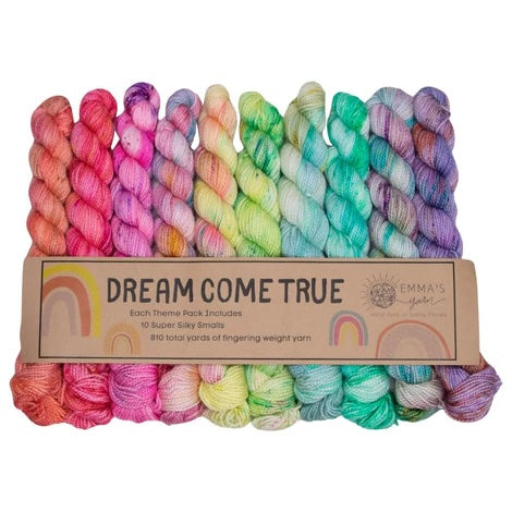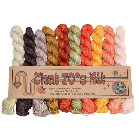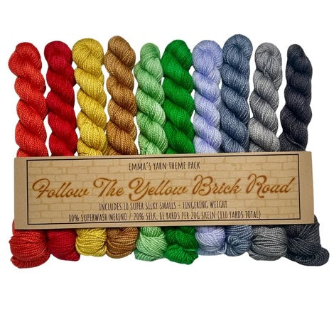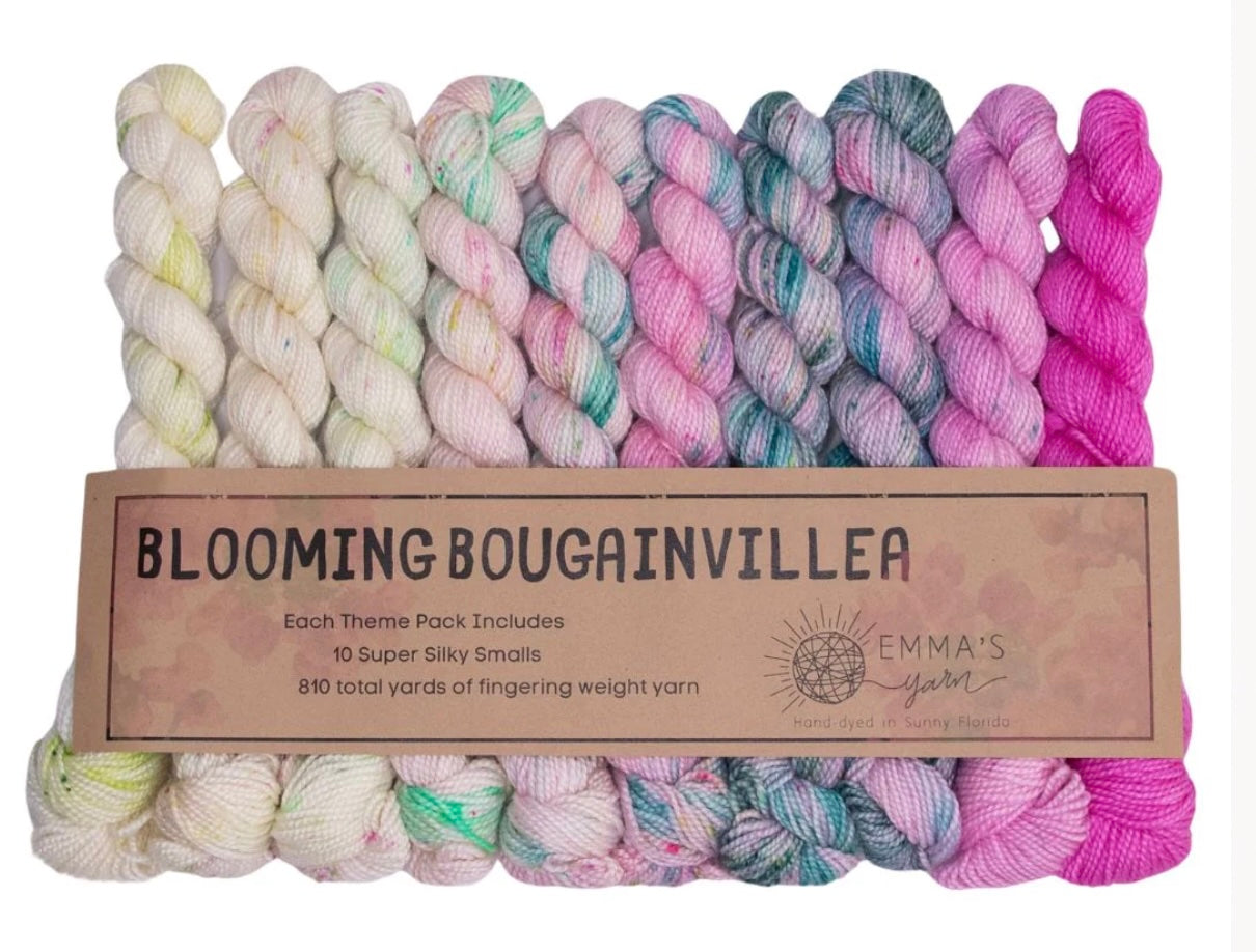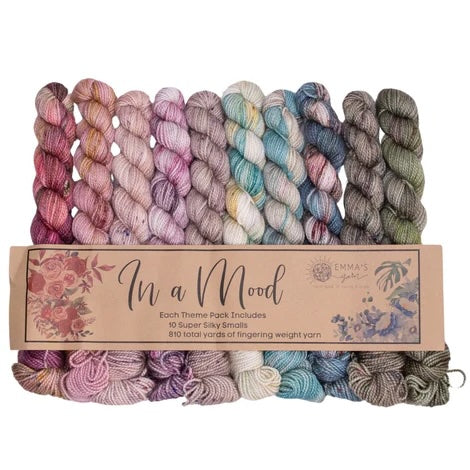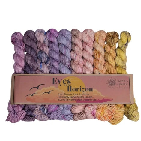 Emma’s Yarn has developed 6 Original “Theme Packs” – each including 10 Smalls that coordinate perfectly and are meant to be used together for a color “melting” effect. Emma & Aspen have been dreaming these up for years and are so excited to finally introduce them to you!
