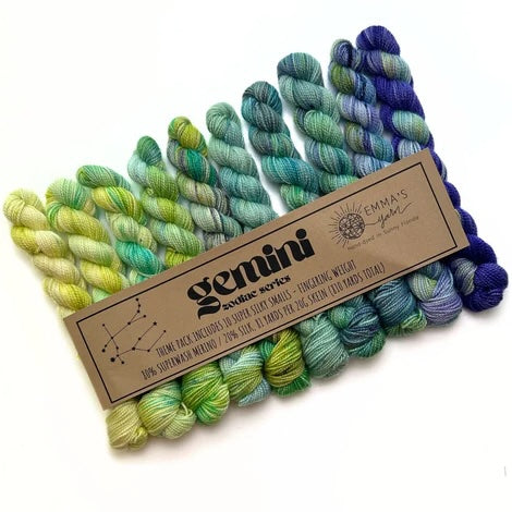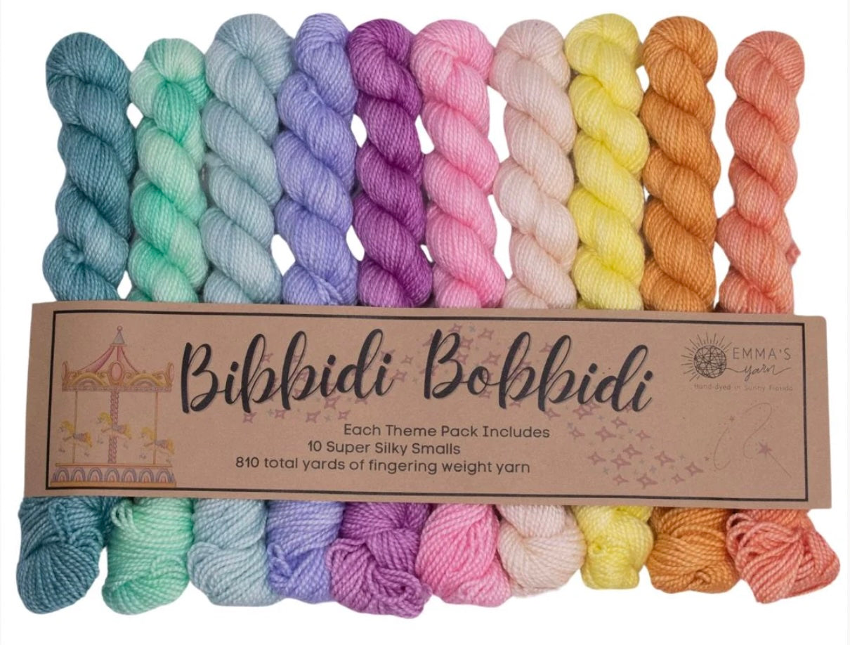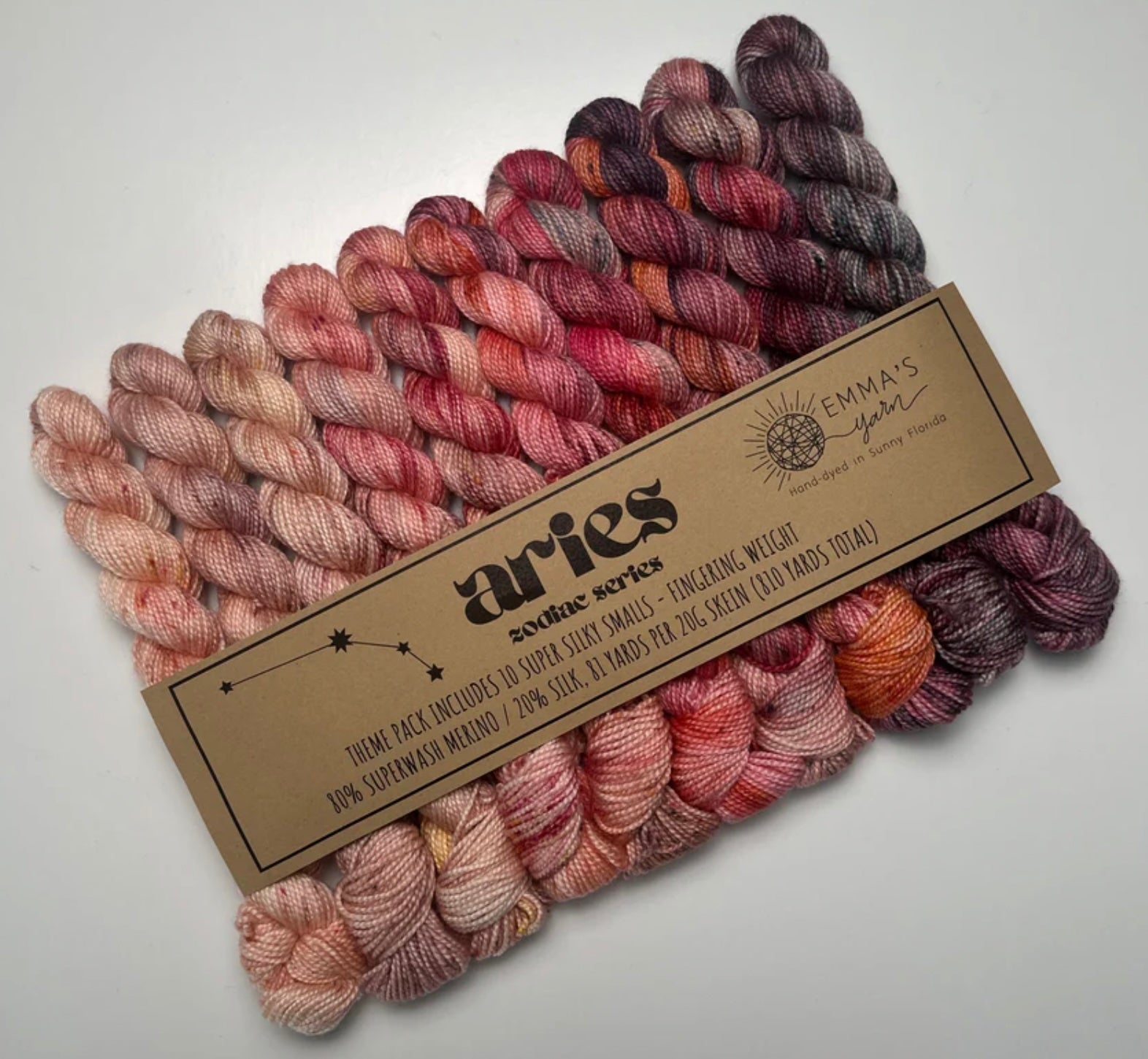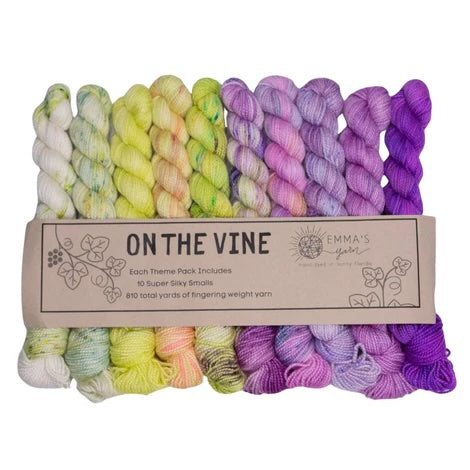 Emma’s Yarn has developed 6 Original “Theme Packs” – each including 10 Smalls that coordinate perfectly and are meant to be used together for a color “melting” effect. Emma & Aspen have been dreaming these up for years and are so excited to finally introduce them to you!