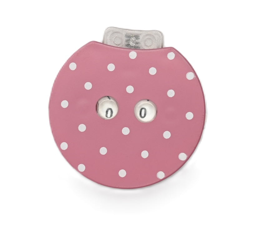 Track the number of knitted stitches and rows with the push of a button. Large Numbers for visibility. Pretty Pink Polka Dots