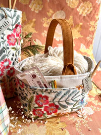 The Wildflower Caddy is adorned with beautifully embroidered spring flowers on a heavy duck canvas and is sure to become a new, fresh favorite. Showcase your refined style with this timeless classic. Not just for crafting, the caddy can be used as an at home diaper bag or a general organizer. This modern fabric design is stylish and practical. Take your projects with you wherever you go and let the elegant design inspire your creations! The Atenti caddy stands alone, providing ample space to store and organize tools and accessories. It is fully lined with four inside and four outside pockets plus a large center chamber. It has a vegan suede handle for easy carrying.